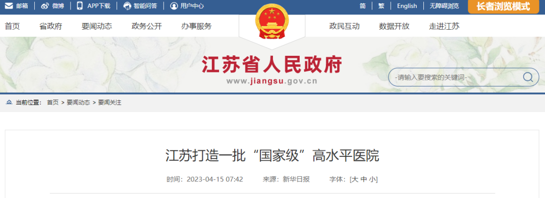 近日,江蘇省政府辦公廳正式印發了《江蘇省高水平醫院建設實施方案》,明確要打造一批“國家級”高水平醫院。